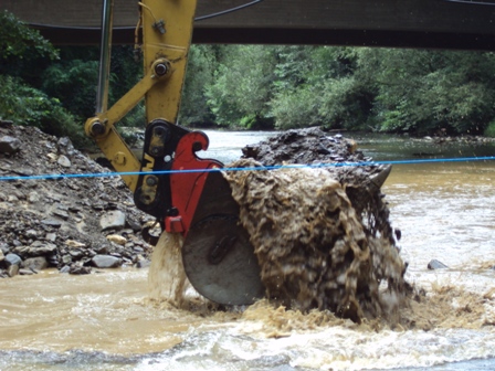 Arbeiten in bengten Verhältnissen in Hatzenport an der Mosel.