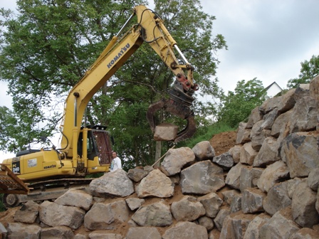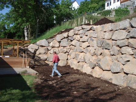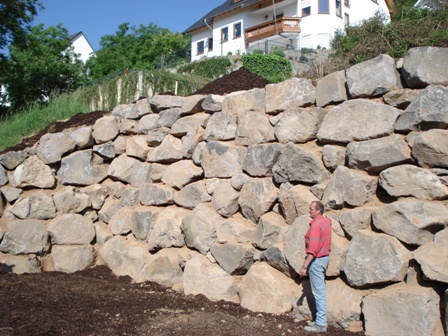 Natursteine aus Basalt ( Gewicht bis zu 7 Tonnen) liefern und in den Hang einarbeiten. ( Inkl. Statik )