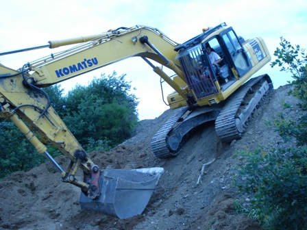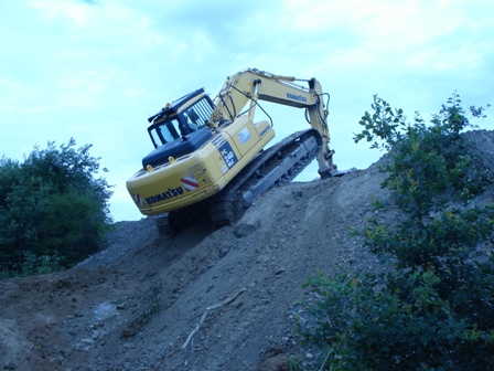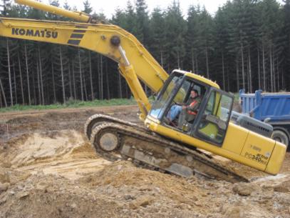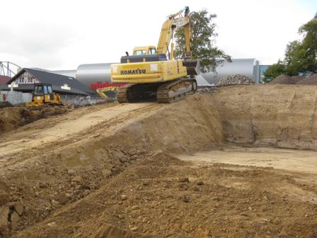 Erstellen einer Baugrube und Frostschutz einbringen für Trafostation 8 Meter unter der Geländeoberkannte.